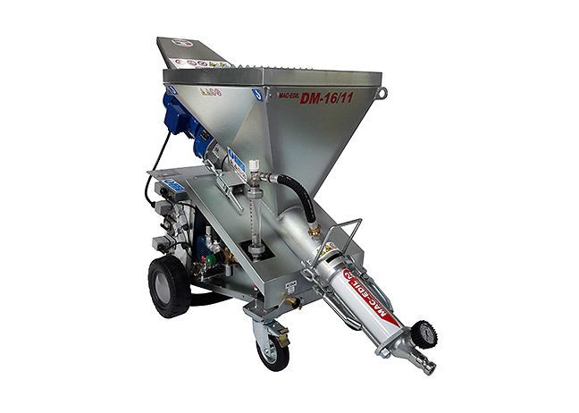 La DM20/08 è un'intonacatrice che permette di trasportare e spruzzare sia intonaco tradizionale che premiscelato in automatico. E' provvista di un quadro elettrico con inverter per la regolazione della portata (che può variare da 5 a 25 l/min) ed è eccellente anche per iniezioni e stilatura di mattoni sasso faccia a vista.