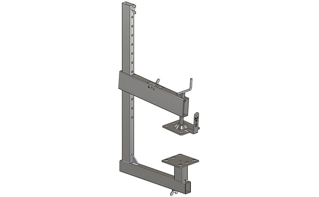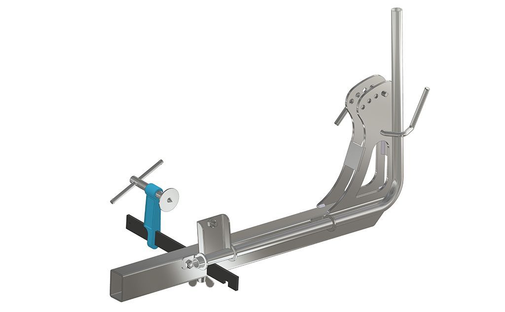 La particolarità del parapetto provvisorio a morsetto è data dalla presenza di due componenti mobili collegati tra loro da una barra filettata azionata da una manovella manuale.