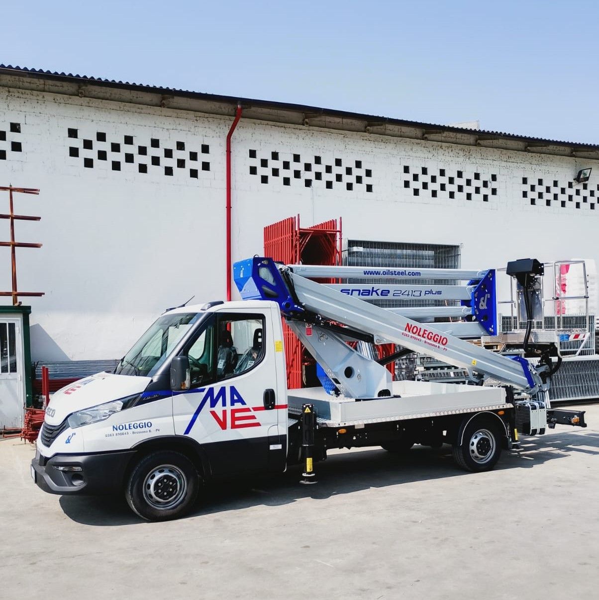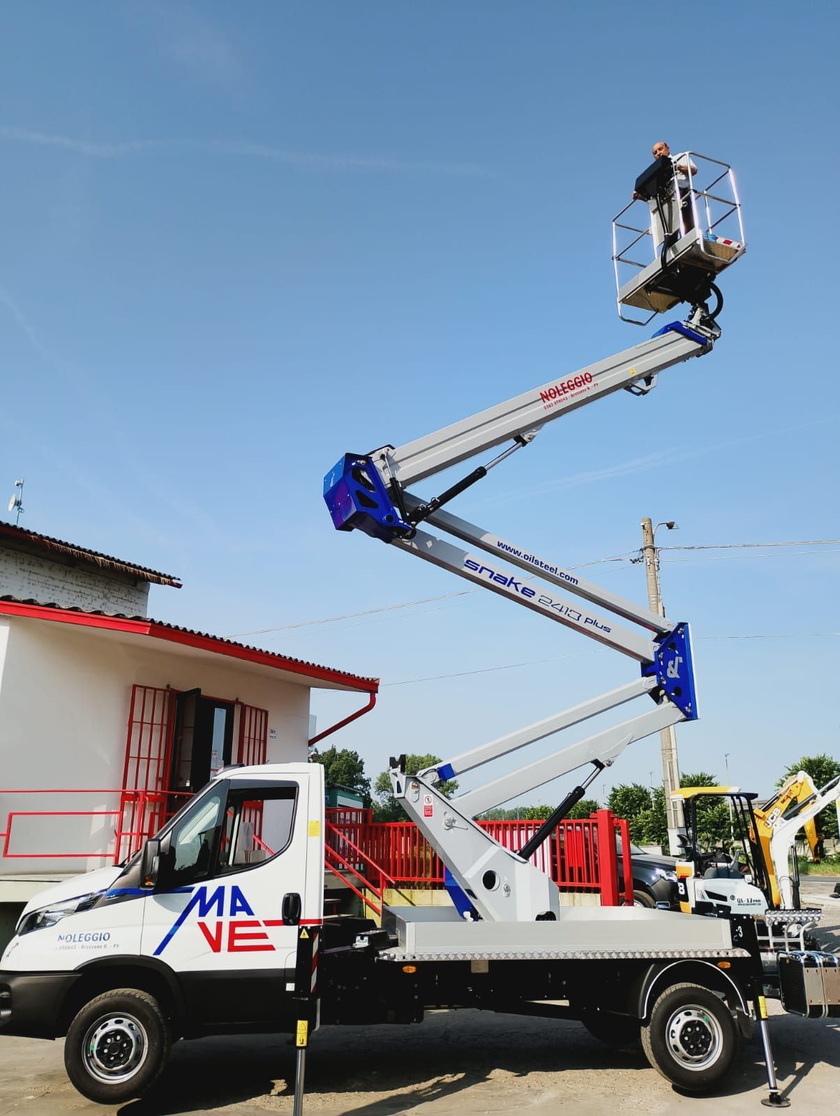 Mave srl dispone di apparecchi di ultima generazione, tra cui la piattaforma aerea autocarrata Socage, modello DA 320. Una macchina dalla doppia articolazione, che può raggiungere un’altezza massima pari a 20 metri e uno sbraccio estensibile sino a 9,5 metri. Il cestello operatore è completamente in alluminio e ha una portata massima di 225 kg. Scegli un accurato servizio di noleggio gru, piattaforme aeree e macchine edili a Pavia: rivolgiti a noi!